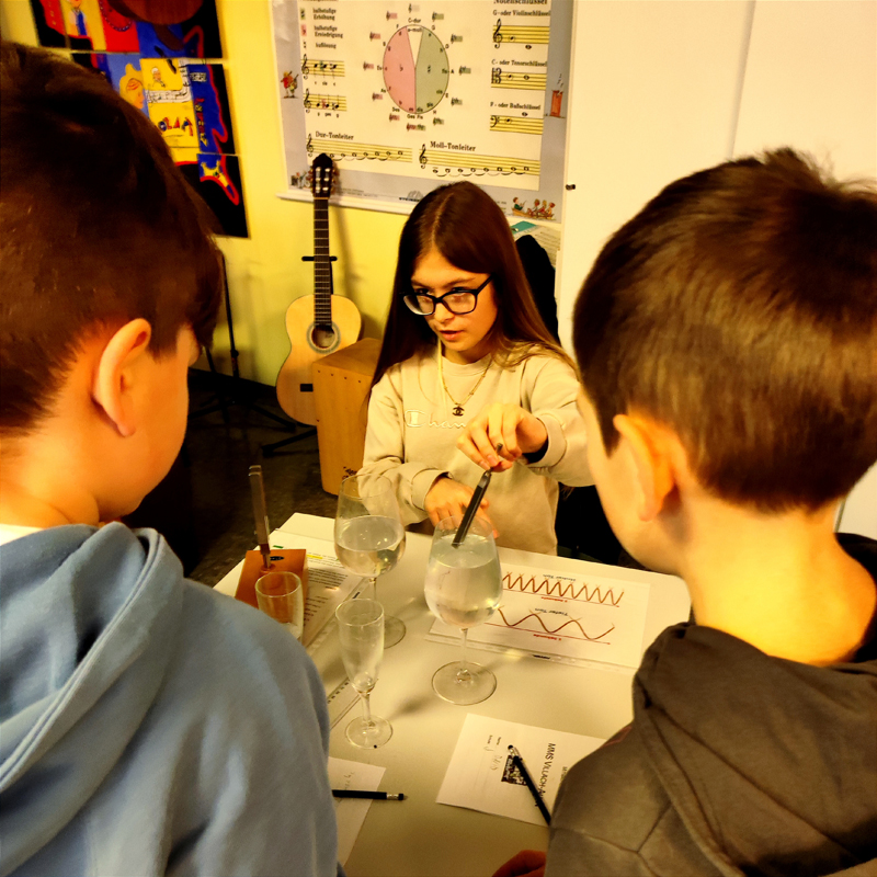 Versuche wie elektrostatische Blitze, singende Gläser oder Bee Bots ließen unsere zukünftigen Schülerinnen und Schüler die Vielseitigkeit unseres Unterrichts erfahren und zeigten einen völlig anderen, neuen, kurz: naturwissenschaftlich-technisch-musikalischen Zugang zu dem, was "die Welt im Innersten zusammenhält" (Goethe).