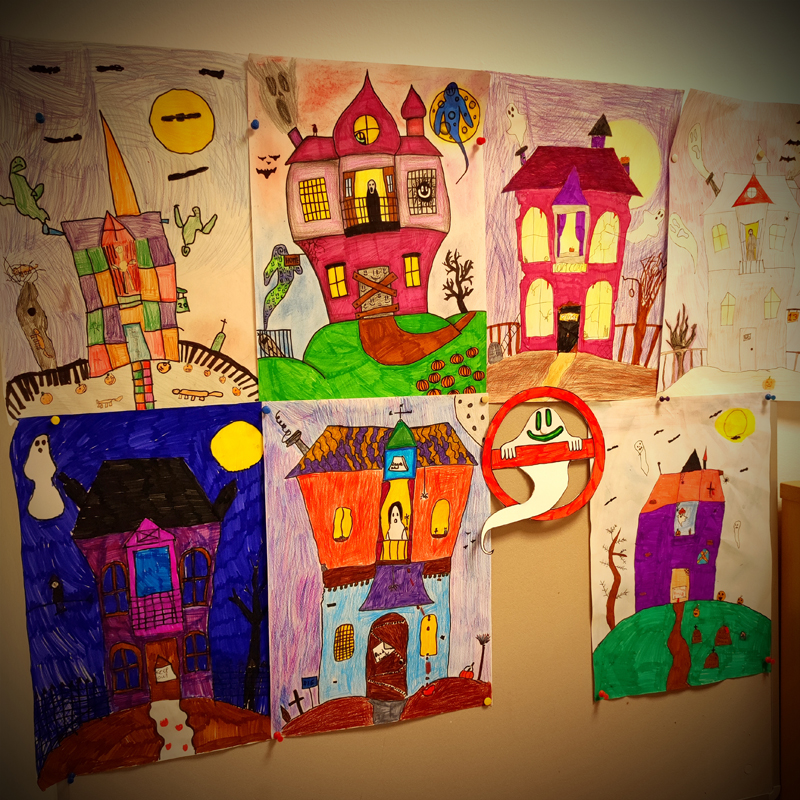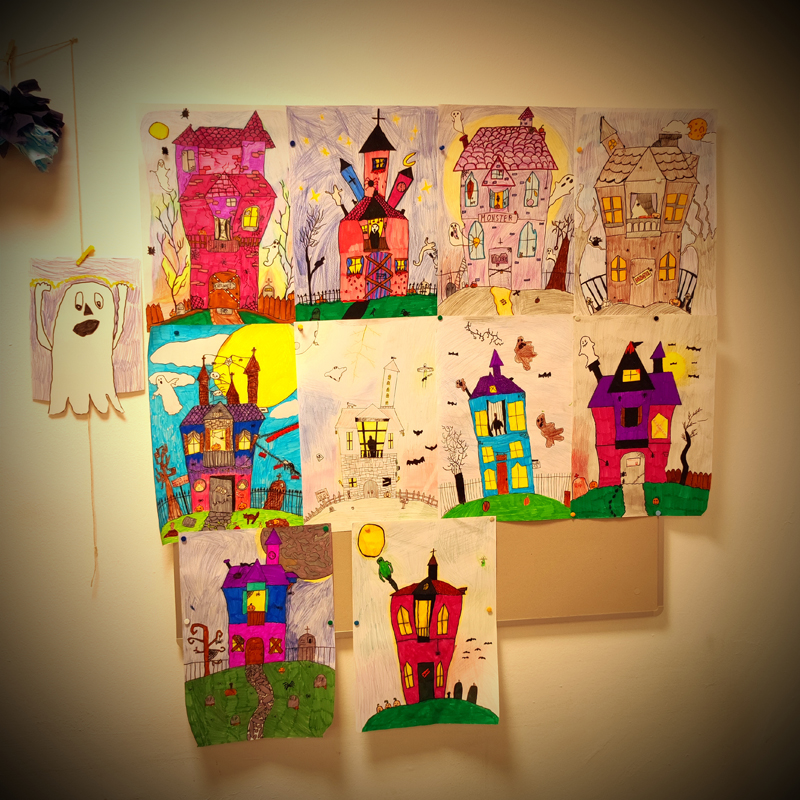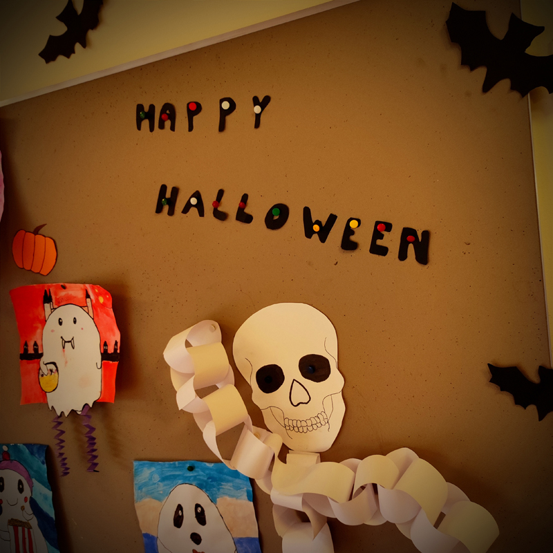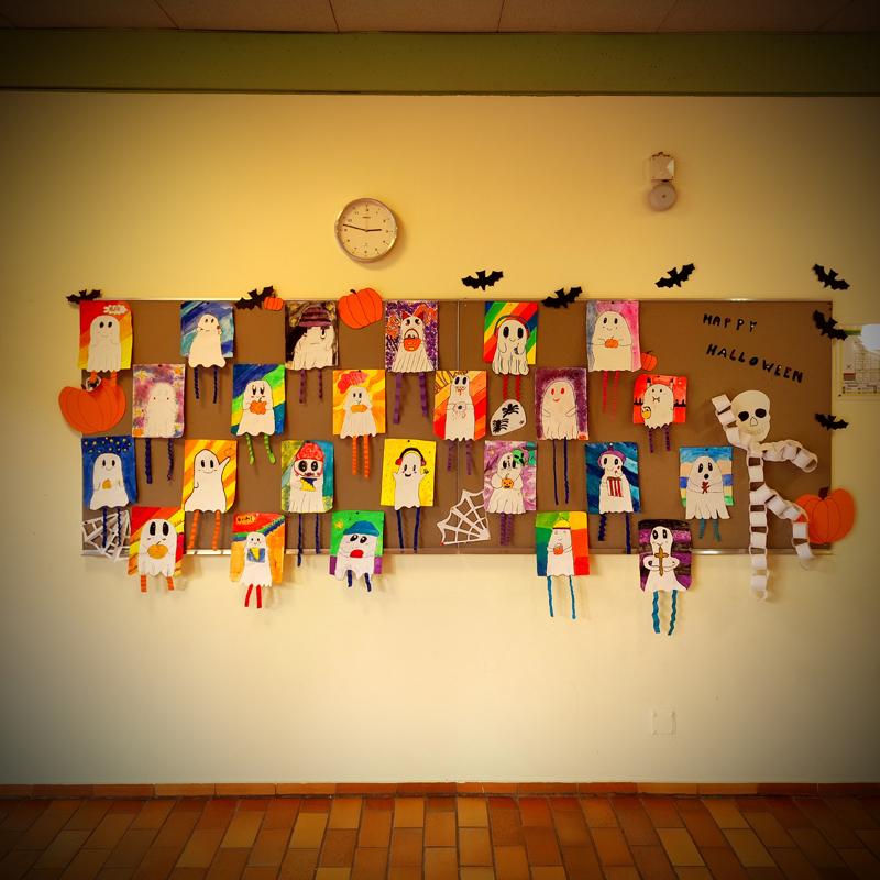 Süßes und Saures begeistern nicht nur in Amerika! Auch viele unserer Klassen sind ganz verrückt nach Halloween: Gespenster (1A), Gruselhäuser (2M) oder geknüpfte Skelette und unheimliche Faltbilder (2C) machten in letzter Zeit nicht nur den KG-Unterricht besonders spannend, sondern verschönern seitdem auch unsere Gänge und Klassen!